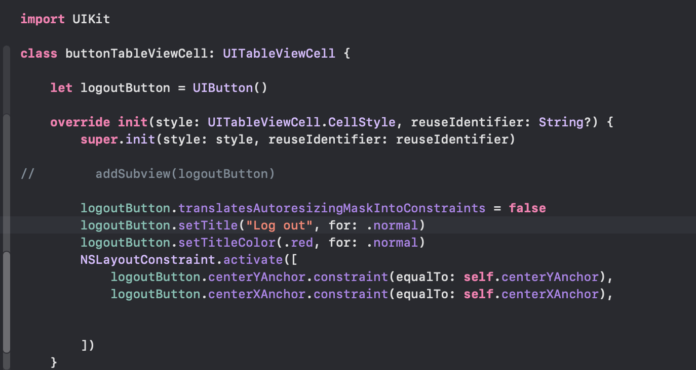 주석처리한 곳을 보면 addSubview에 주석처리가 되어있는 걸 확인할 수 있다.
