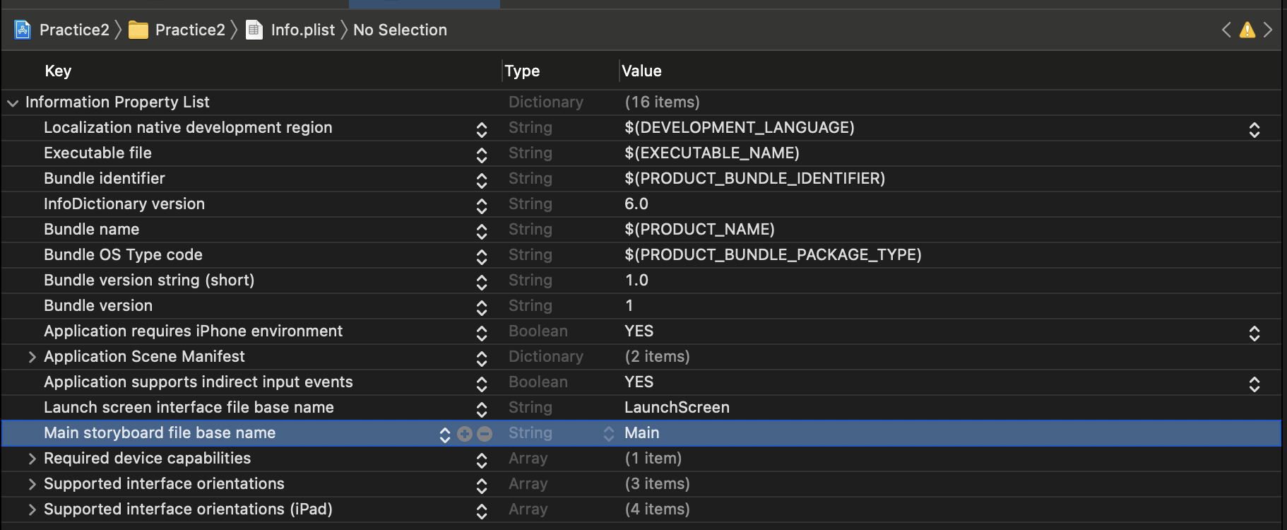 Application Scene Manifest > Scene Configuration > Application Session Role > Item 0 > Storyboard Name : Main 삭제