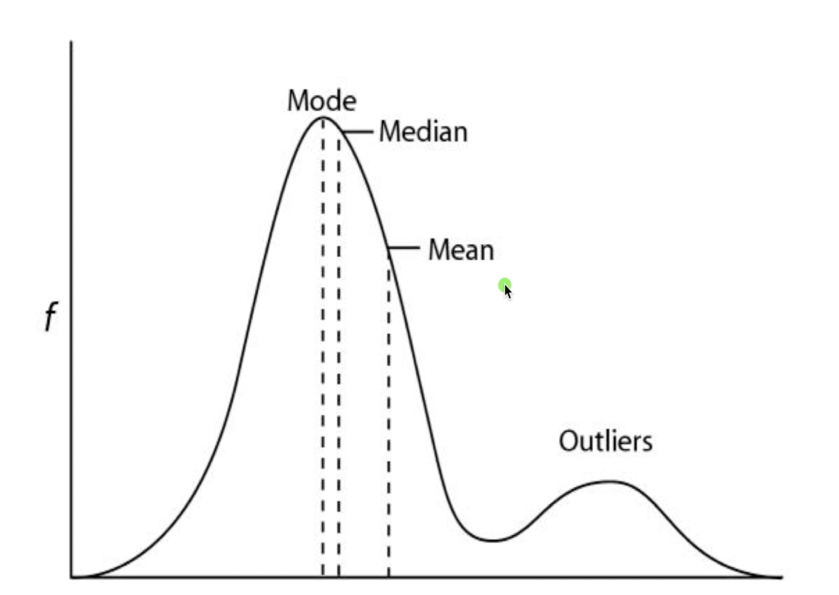 Median - 중앙값 (the middle number in a set of ordered values, might be the mean of 2 middle values.)