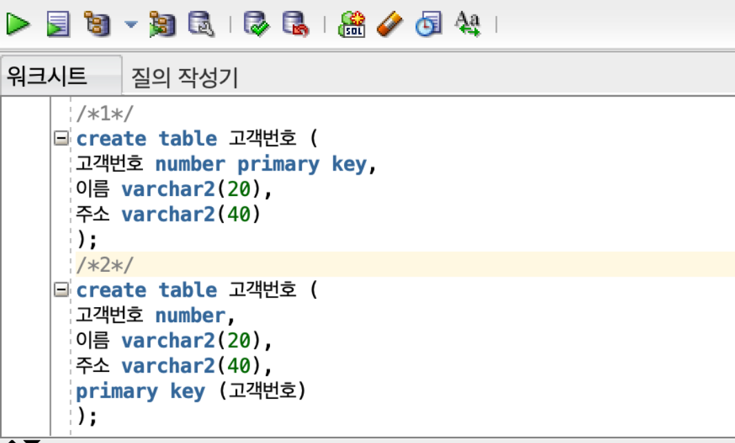 +번호) 는 설명을 위해 붙였고, 테이블 형성 시 선택사항입니다.