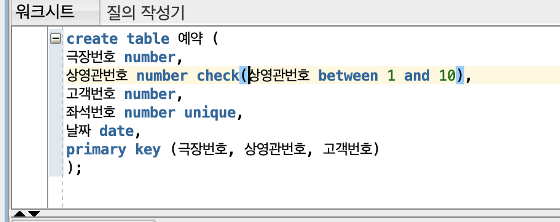 (check 조건)을 이용해 해당 속성에 값의 범위를 제한이 가능합니다.