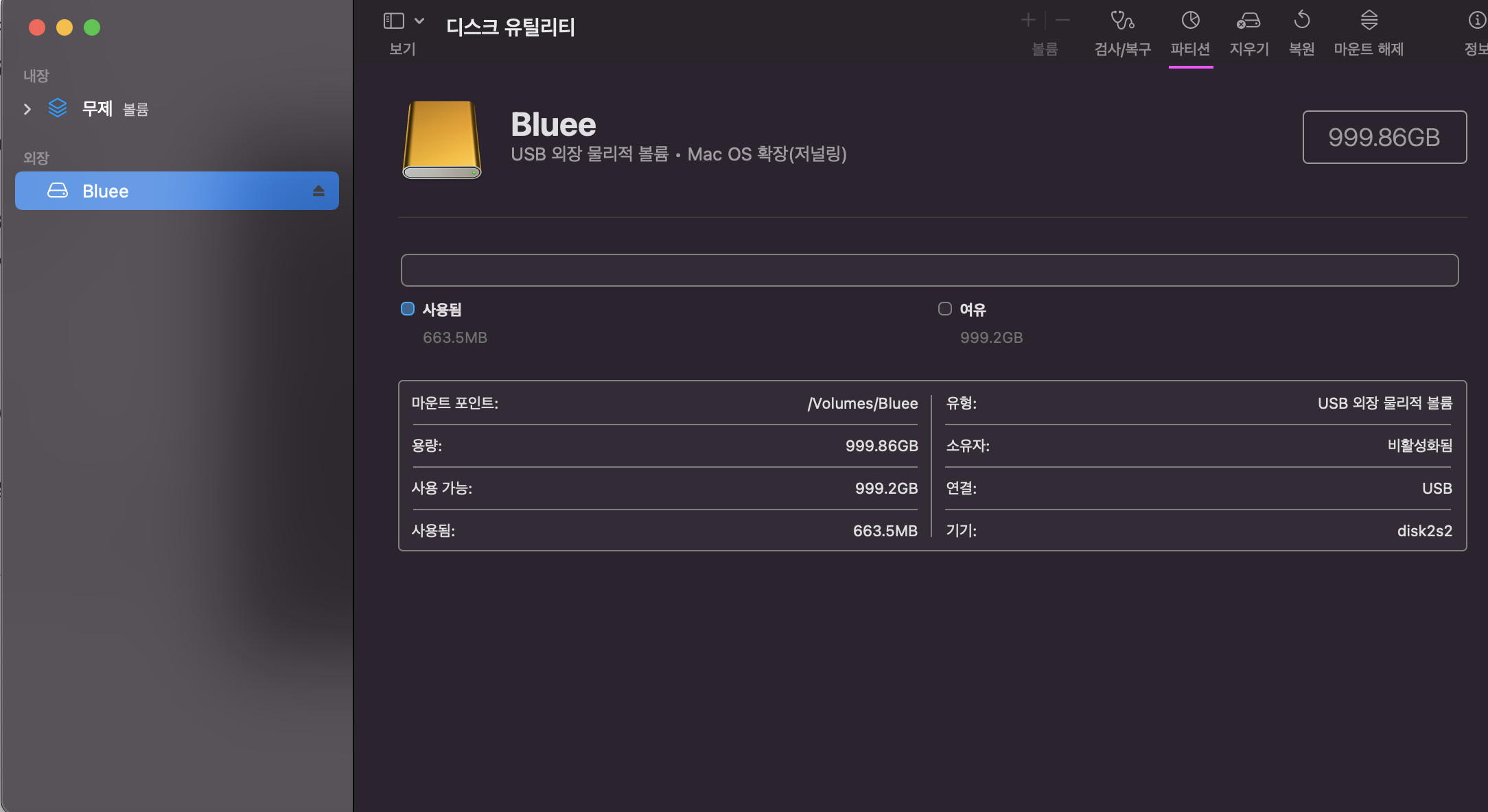 명령어 입력 즉시 오른쪽 상단에 알림이 뜨면서 파티션 버튼 설정이 활성화가 되었습니다!